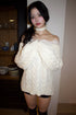 とろみのある甘さを纏う、クラシカルなオフショルニット。立体的なケーブル編みと、胸元に並ぶパールボタンのディテールが品の良さを演出。ふんわりボリュームスリーブと肩を落としたオフショルダーのバランスが、女の子らしい華奢見せを叶えます。